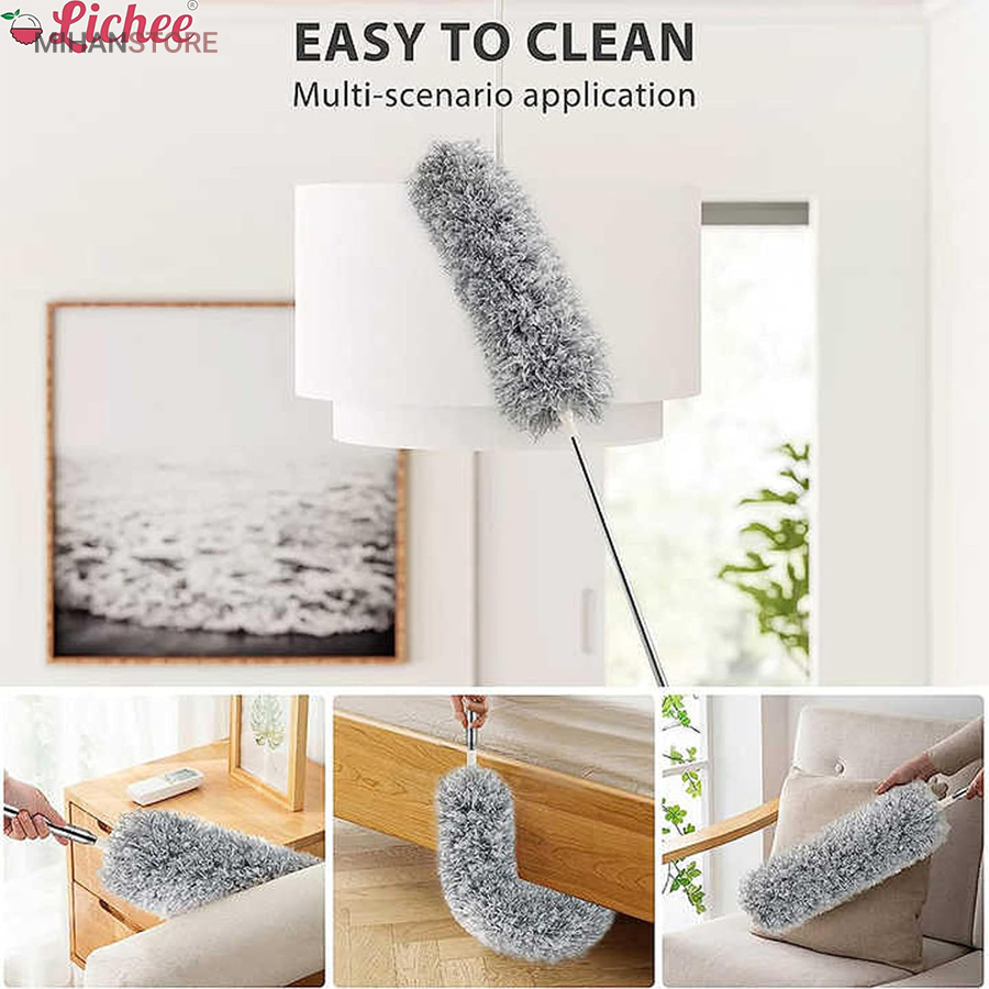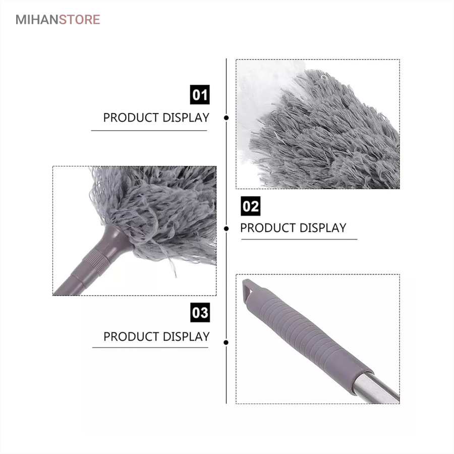 گردگیر تاشوی دسته بلند جهت نظافت و گردگیری و غبار روبی فضاهای دور از دسترس نظیر روی کابینت ها ، کنج سقف ها ، روی کمدها ،سطوح لوستر و چراغهای سقفی ، داخل آرک نورپردازی های مخفی و نظایر آن دارای کاربرد بوده و بخوبی در تمیزی محیط به شما کمک میکند . این محصول دارای دسته تاشو از جنس استیل بوده که بصورت تلسکوپی براحتی داخل خود جمع میشود و در کمترین فضای ممکن جای میگیرد .