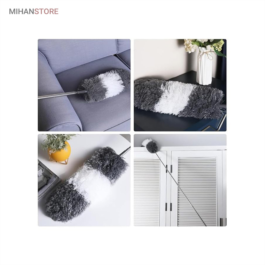 یک ابزار حرفهای و کاربردی برای تمیزکاری سطوح بلند و نقاطی است که دسترسی به آنها معمولاً دشوار است. این محصول با دسته بلند تلسکوپی و سری قابلانعطاف، امکان گردگیری سقف، گوشهها، لوسترها، پردهها، بالای کابینت و پشت وسایل بزرگ را بدون نیاز به نردبان فراهم میکند. دسته این گردگیر از آلیاژ سبک و مقاوم ساخته شده و قابلیت تنظیم طول تا ۲.۵ متر را دارد. این ویژگی باعث میشود بتوانید بسته به نیاز، طول دسته را کوتاه یا بلند کرده و با تسلط کامل عملیات تمیزکاری را انجام دهید. وزن سبک دسته مانع خستگی دست در استفاده طولانیمدت میشود و طراحی ارگونومیک آن کنترل بهتری هنگام کار فراهم میکند. سری گردگیر از الیاف میکروفایبر با قدرت جذب بالا تولید شده است که گردوغبار، مو و ذرات ریز را بهخوبی جذب کرده و از پخش شدن آنها در هوا جلوگیری میکند. این الیاف به سطوح حساس مانند شیشه، چوب و لوازم تزئینی آسیبی نمیزنند و برای نظافت ایمن کاملاً مناسب هستند. یکی از مهمترین مزایای این گردگیر، چندحالته بودن سری است. سری انعطافپذیر آن قابلیت خم شدن و تنظیم زاویه دارد و میتواند بهراحتی به گوشهها، کنجها و نقاط نامنظم دسترسی پیدا کند. همچنین در برخی مدلها امکان جدا شدن سری برای شستشو وجود دارد که به افزایش عمر مفید محصول کمک میکند.